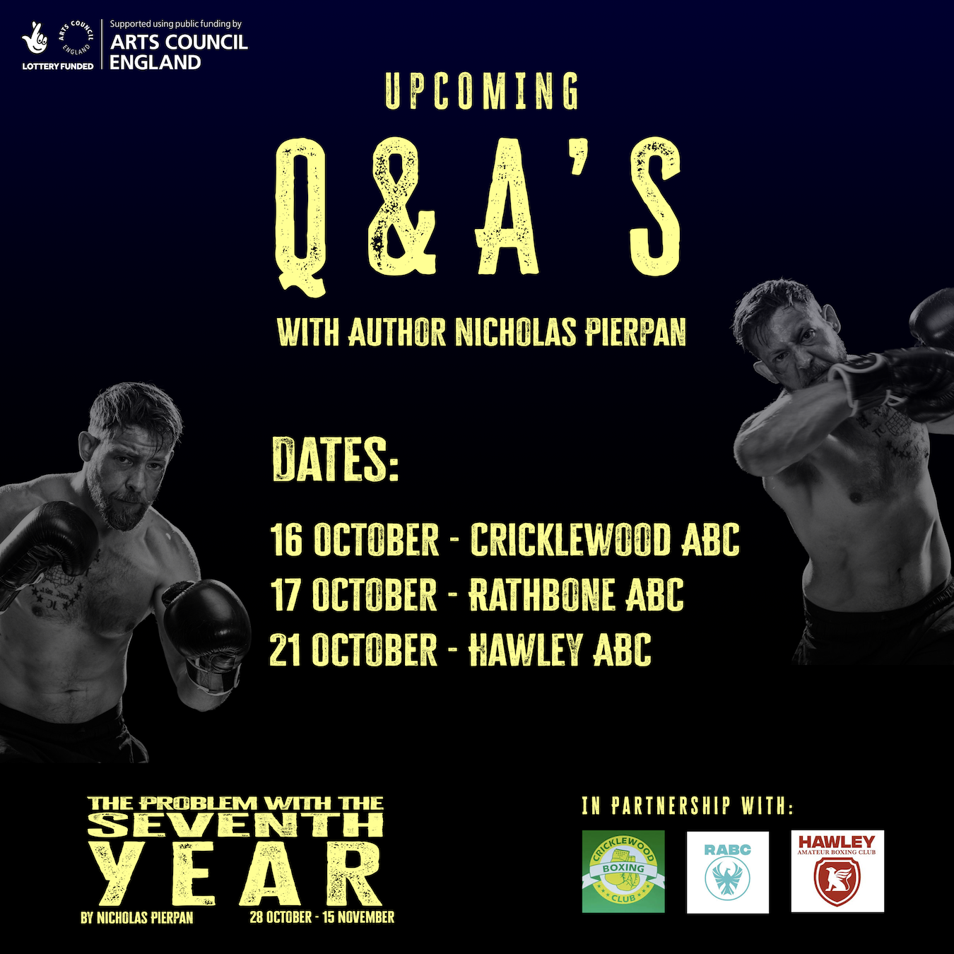 The second of our three Q&A’s with the author of The Problem with the Seventh Year, Nicholas Pierpan. The Rathbone Amateur Boxing Club welcomed us into their community with a discussion about the play, its portrayal of boxing and our author’s experience as a writer. Thanks for hosting us!